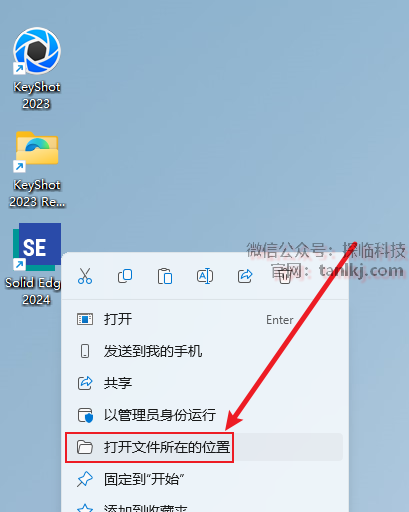 在桌面,右键软件【Solid Edge 2024】,点击【打开文件所在的位置】。