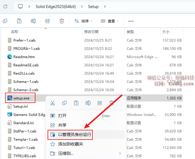 右键程序【setup】,点击【以管理员身份运行】。