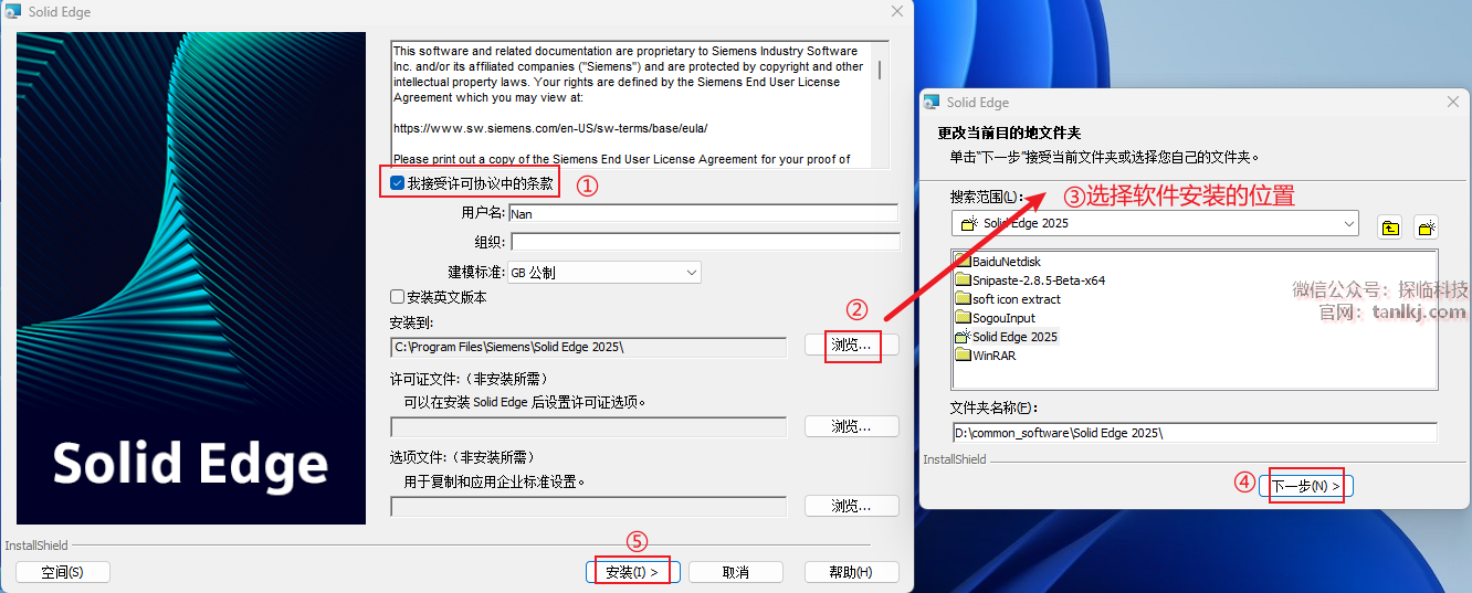 ①勾选【我接受许可协议中的条款】;
