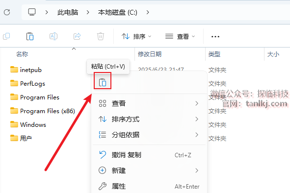 打开电脑C盘,粘贴刚刚复制的文件。