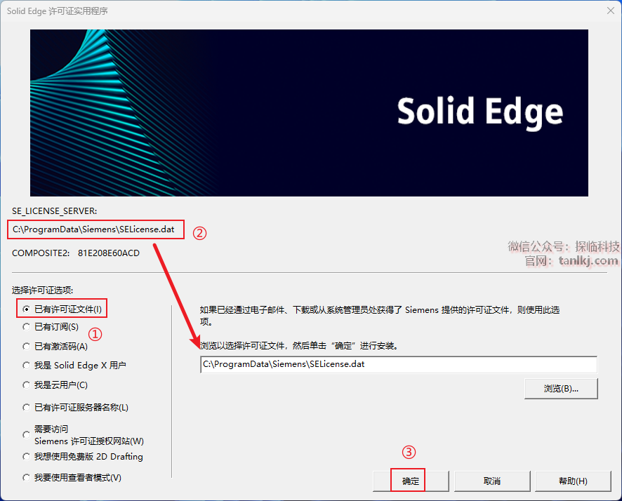 ②复制许可文件路径到指定框中;