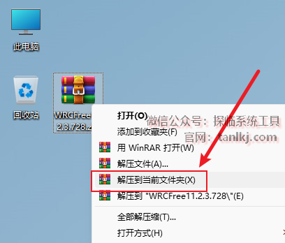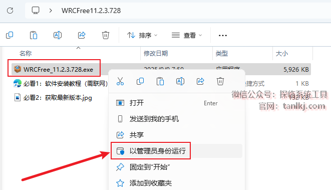 打开解压后的文件夹,右键程序【WRCFree…】,点击【以管理员身份运行】。
