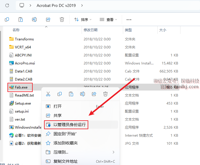 打开之前解压后的文件夹,右键文件【Fab】,点击【以管理员身份运行】。