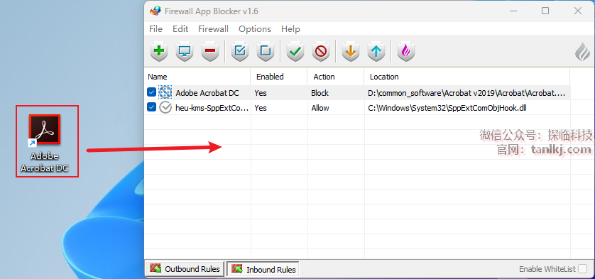 将软件【Adobe Acrobat…】拖至【Firewall App Blocker】中。