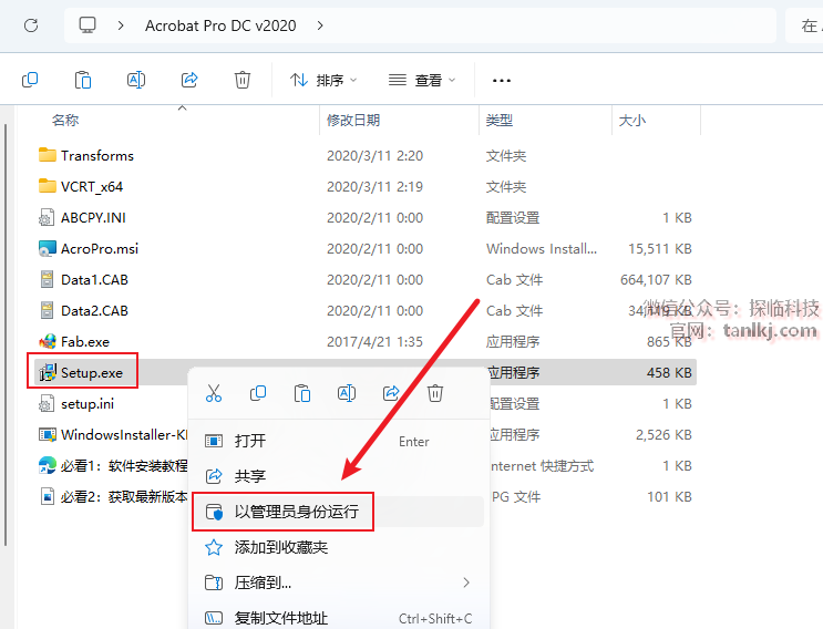打开解压后的文件夹,右键安装程序【Setup】,点击【以管理员身份运行】。