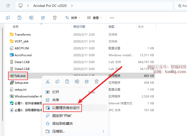 打开之前解压后的文件夹,右键文件【Fab】,点击【以管理员身份运行】。