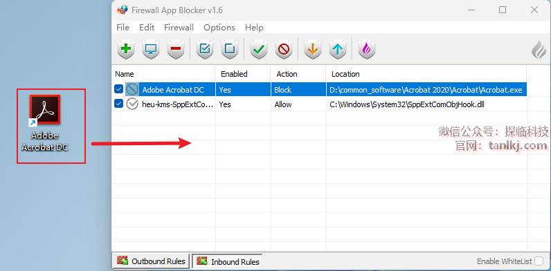 将软件【Adobe Acrobat…】拖至【Firewall App Blocker】中。