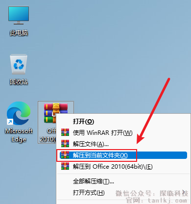 解压下载后的软件包。右键软件包,点击【解压到当前文件夹】(win11系统需先点击【显示更多选项】)。
