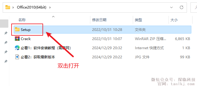打开解压后的文件夹,双击打开文件夹【Setup】。
