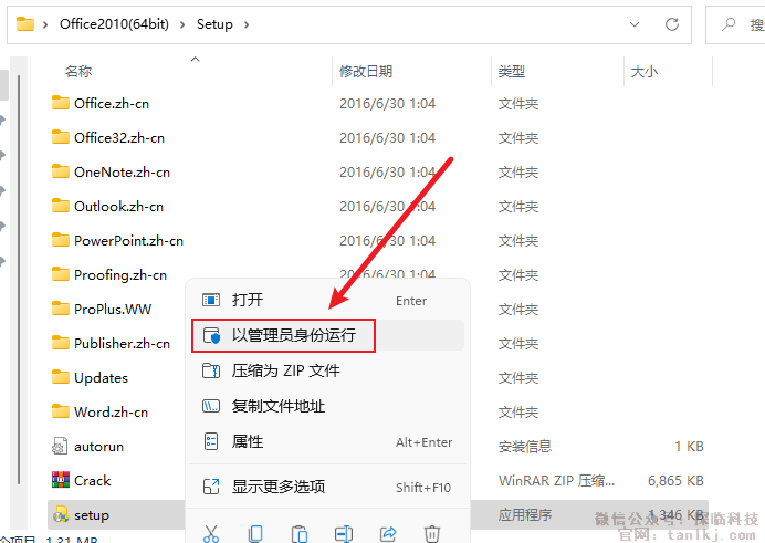 右键安装程序【setup】,点击【以管理员身份运行】。