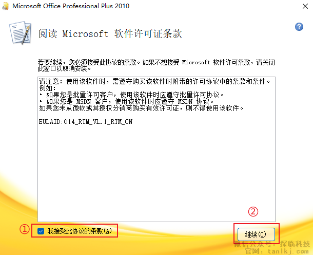 ①勾选【我接受此协议的条款】;