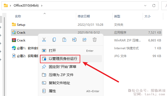 右键解压出来的程序【Crack】,点击【以管理员身份运行】。