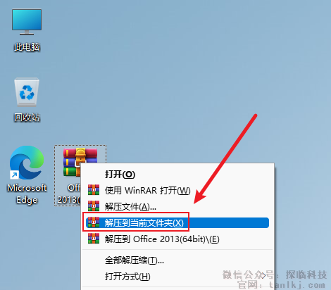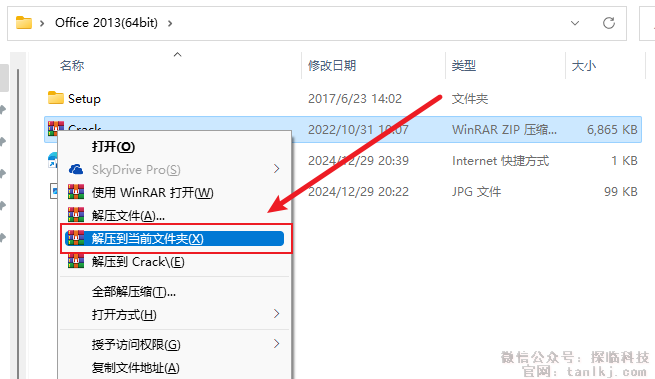 解压下载后的软件包。右键软件包,点击【解压到当前文件夹】(win11系统需先点击【显示更多选项】)。