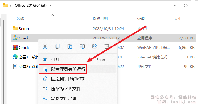 右键解压出来的程序【Crack】,点击【以管理员身份运行】。