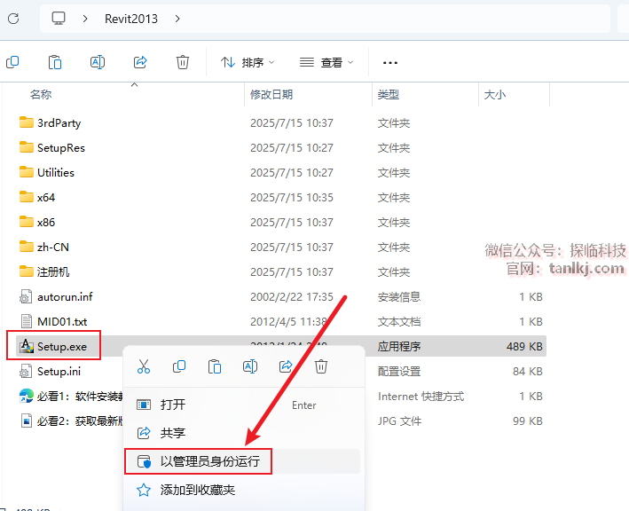 打开解压后的文件夹,右键程序【Setup】,点击【以管理员身份运行】。
