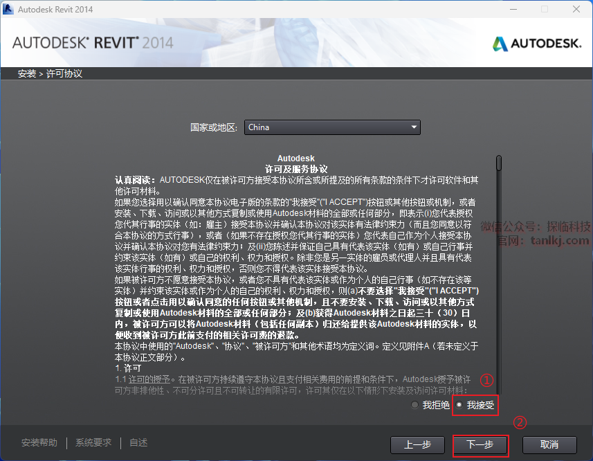 ①勾选【我接受】;