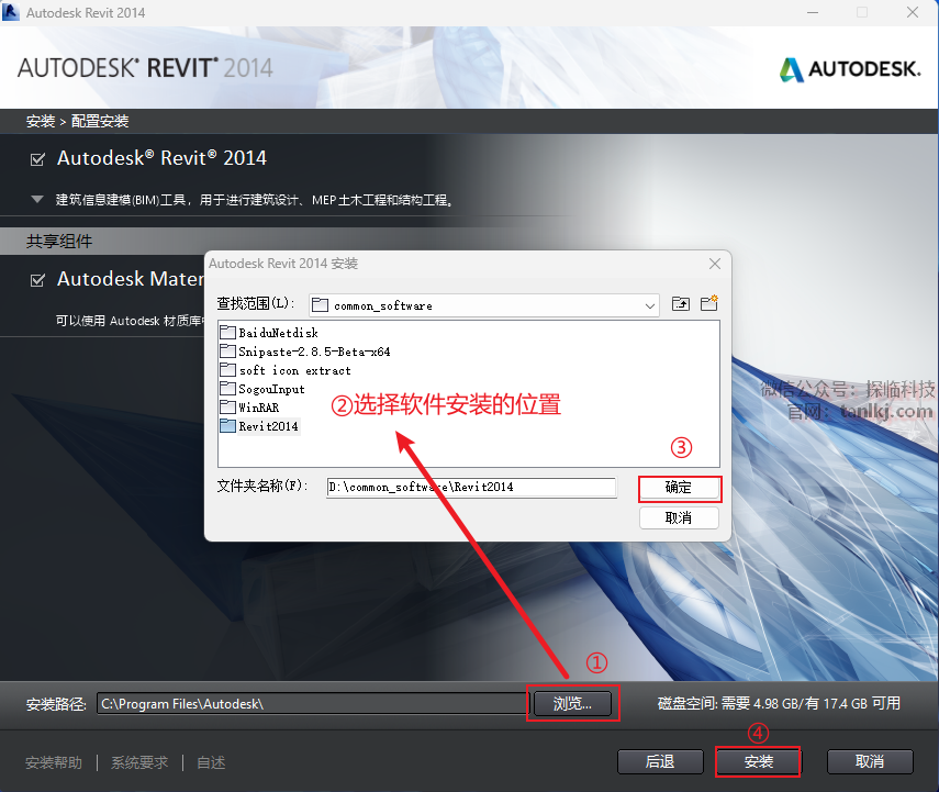 ②选择软件安装的位置,安装路径中不能包含任何中文字符;