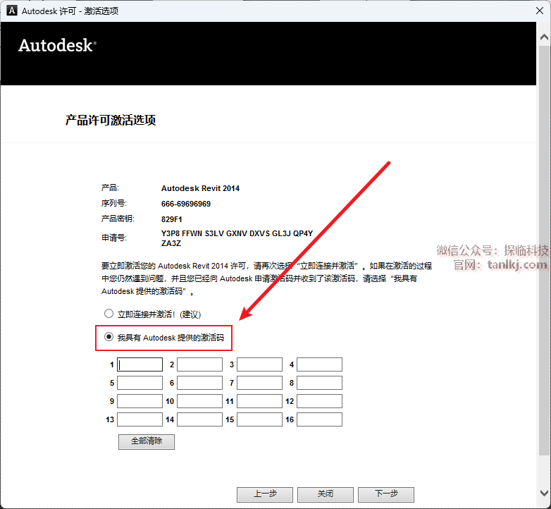 勾选【我具有Autodesk提供的激活码】。