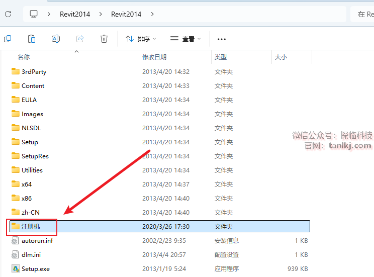回到文件夹【Revit2014】中,双击打开文件夹【注册机】。