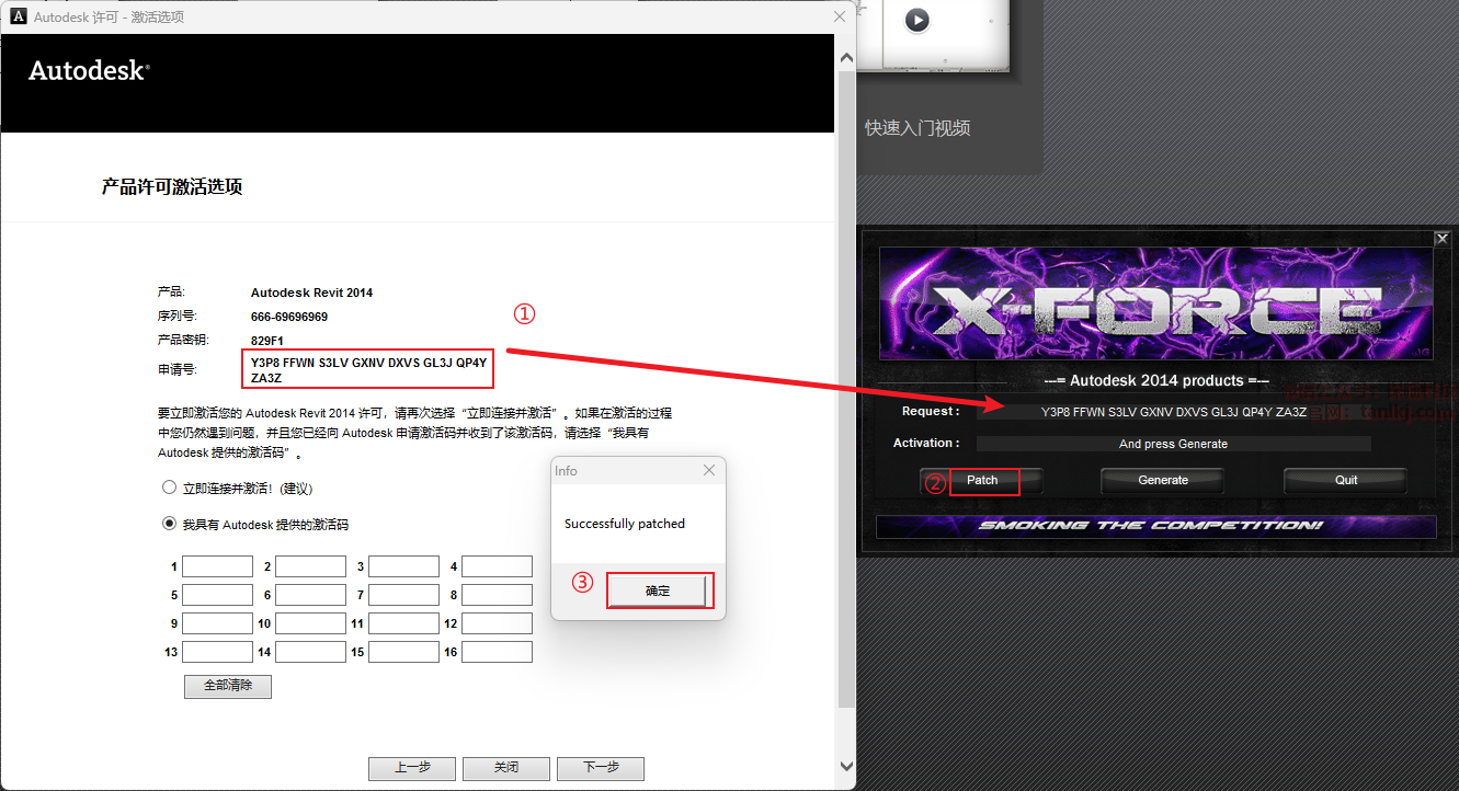②复制【Activation】框中生成的激活码至指定位置;