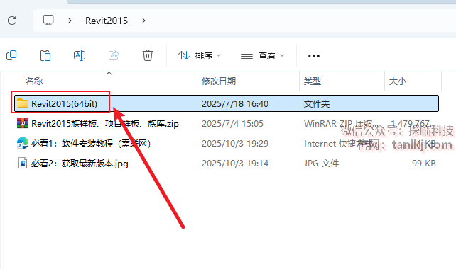 打开解压后的文件夹,双击打开文件夹【Revit2015(64bit)】。