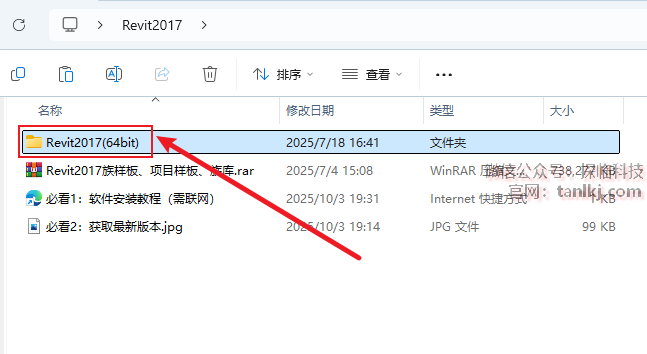 打开解压后的文件夹,双击打开文件夹【Revit2017(64bit)】。