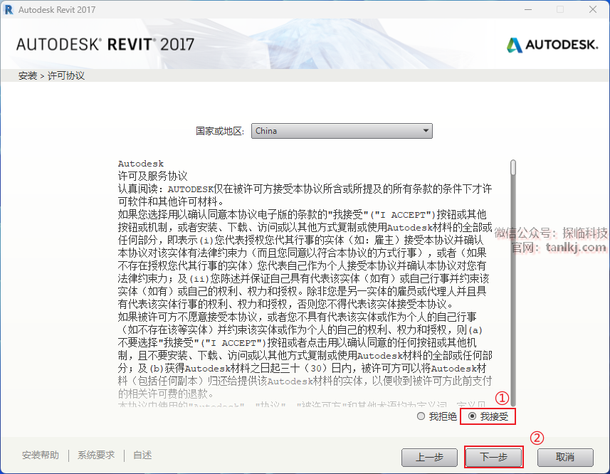 ①勾选【我接受】;