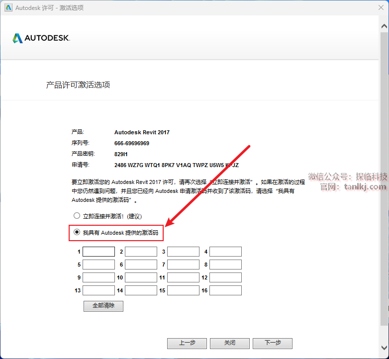 勾选【我具有Autodesk提供的激活码】。