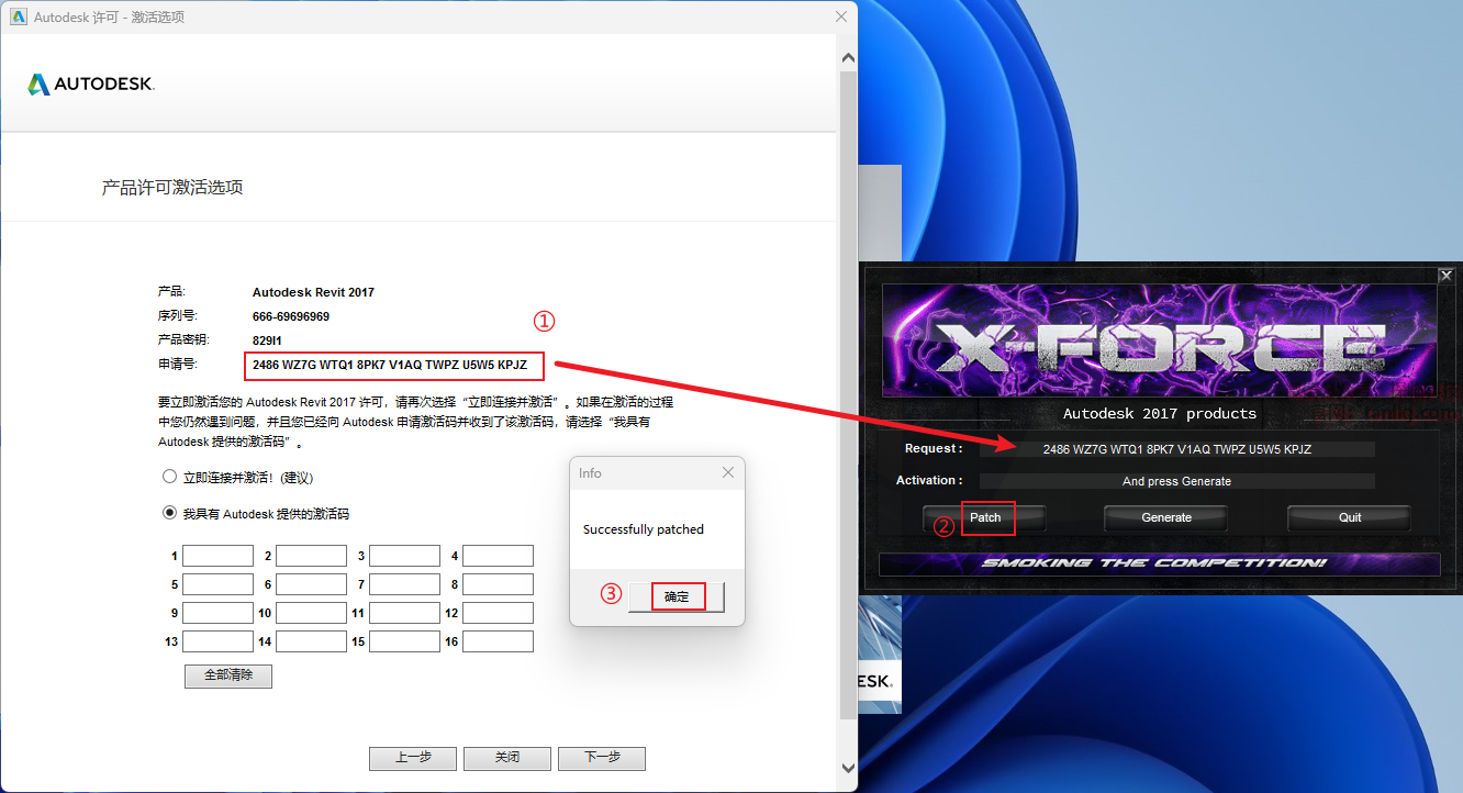 ②复制【Activation】框中生成的激活码至指定位置;