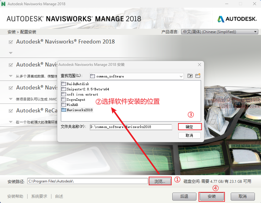 ②选择软件安装的位置,安装路径中不能包含任何中文字符;