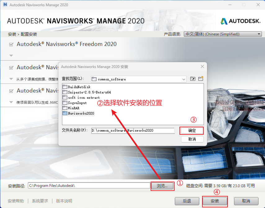 ②选择软件安装的位置,安装路径中不能包含任何中文字符;