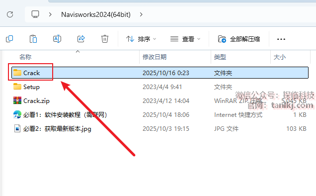 回到之前解压后的文件夹内,解压文件【Crack】,解压到“Crack”。