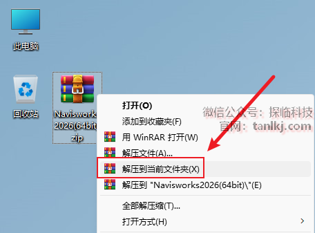 解压下载后的软件包。右键软件包,点击【解压到当前文件夹】(win11系统需先点击【显示更多选项】)。 (未安装解压软件可以点击此处查看:如何安装解压软件?)