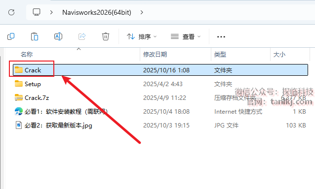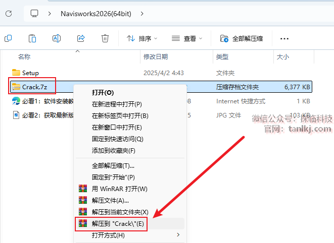 回到之前解压后的文件夹内,解压文件【Crack】,解压到“Crack”。