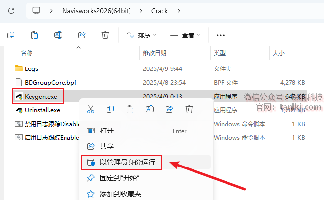 右键程序【Keygen】,点击【以管理员身份运行】。