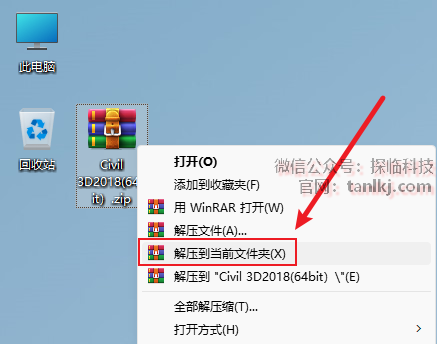 解压下载后的软件包。右键软件包,点击【解压到当前文件夹】(win11系统需先点击【显示更多选项】)。 (未安装解压软件可以点击此处查看:如何安装解压软件?)