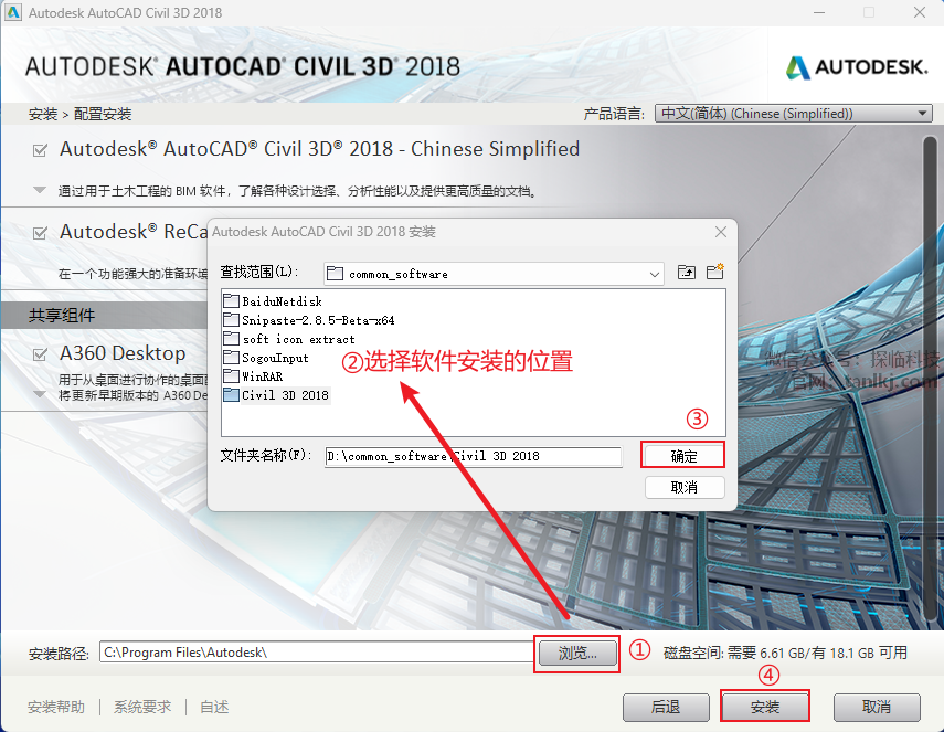 ②选择软件安装的位置,安装路径中不能包含任何中文字符;