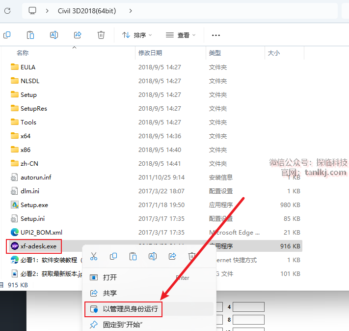 回到之前解压后的文件夹中,右键程序【xf-adesk】,点击【以管理员身份运行】。