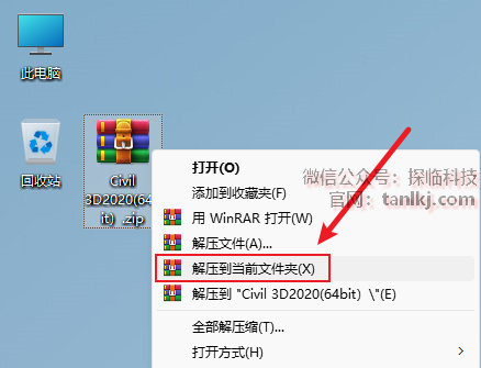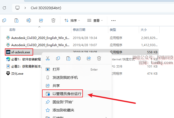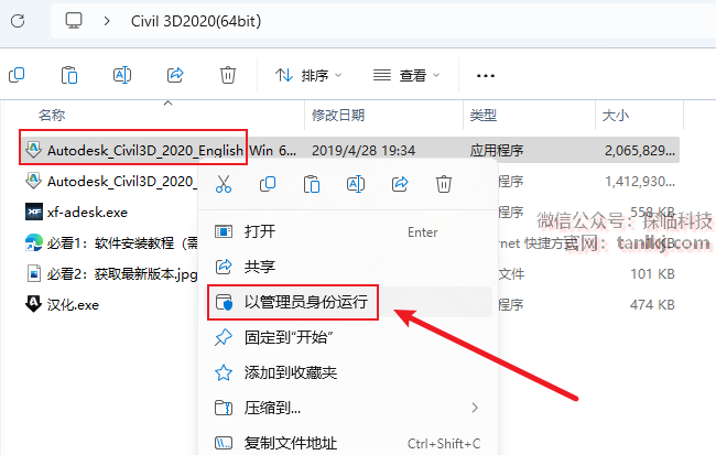 打开解压后的文件夹,右键程序【Autodesk_Civil3D…】,点击【以管理员身份运行】。