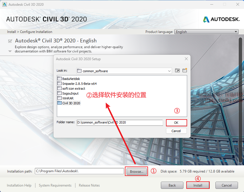 ②选择软件安装的位置,安装路径中不能包含任何中文字符;