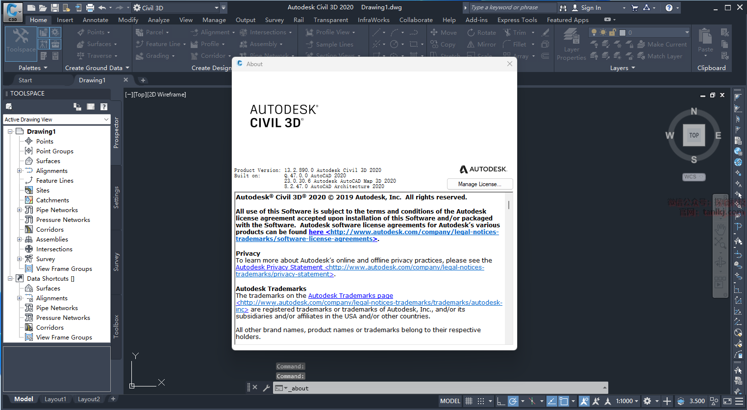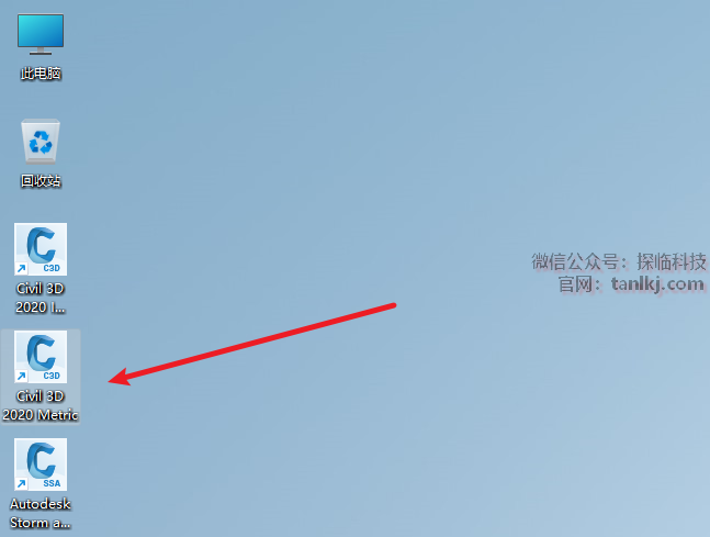 在桌面,双击运行软件【Civil 3D 2020 Metric】。