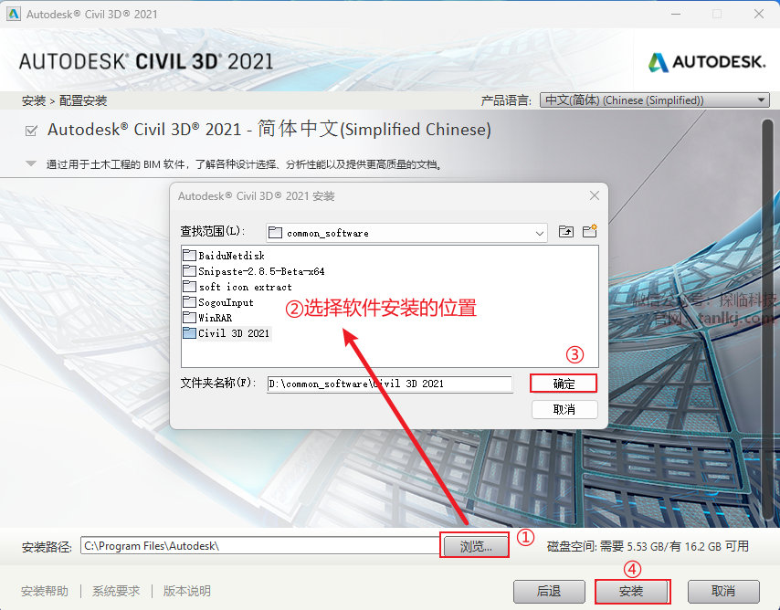 ②选择软件安装的位置,安装路径中不能包含任何中文字符;