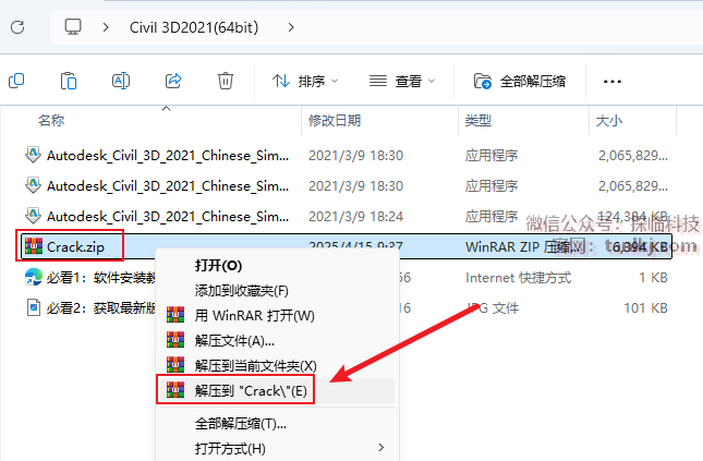 回到之前解压后的文件夹内,解压文件【Crack】,解压到“Crack”。
