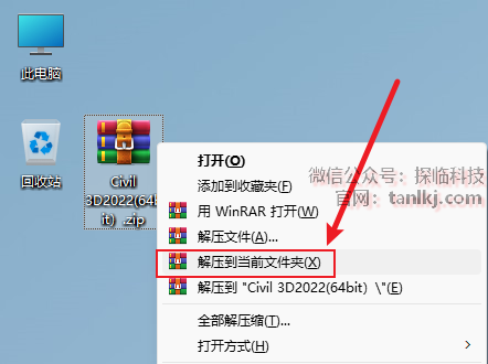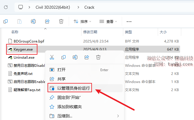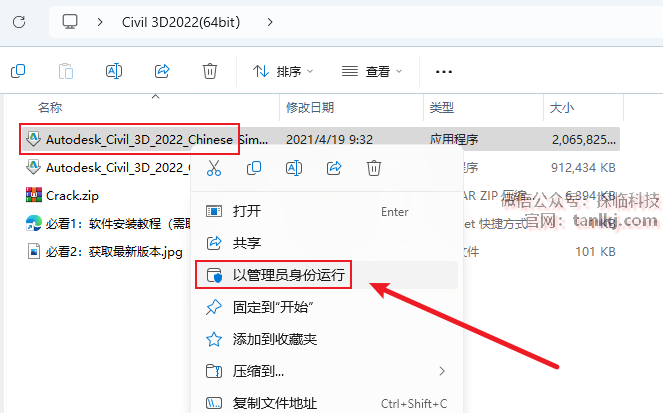 打开解压后的文件夹,右键程序【Autodesk_Civil_3D…】,点击【以管理员身份运行】。