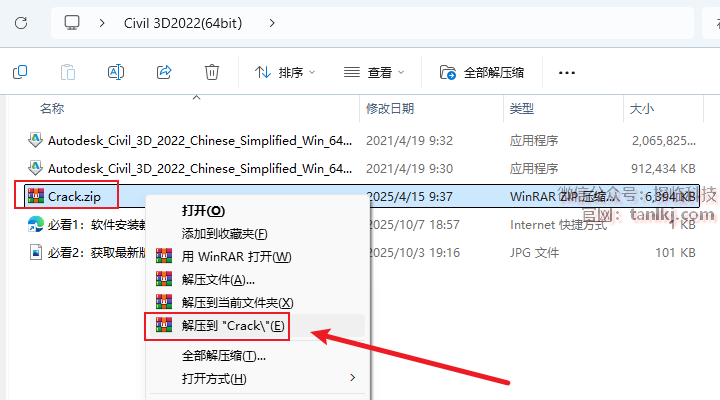 回到之前解压后的文件夹内,解压文件【Crack】,解压到“Crack”。