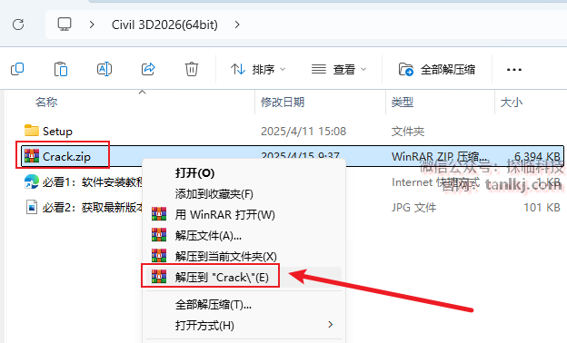 回到之前解压后的文件夹内,解压文件【Crack】,解压到“Crack”。