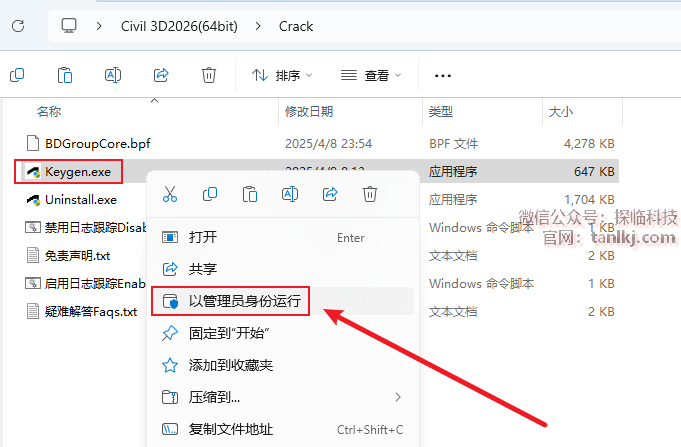 右键程序【Keygen】,点击【以管理员身份运行】。
