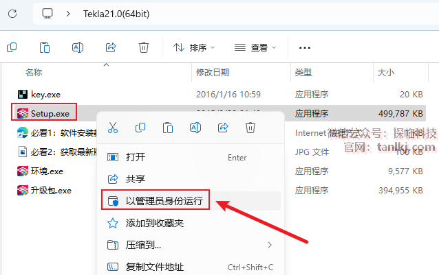 打开解压后的文件夹,右键程序【Setup】,点击【以管理员身份运行】。