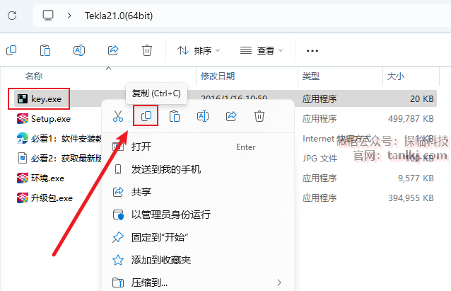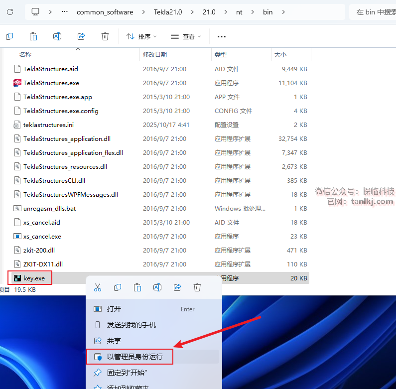 右键刚刚粘贴的文件【key】,点击【以管理员身份运行】。