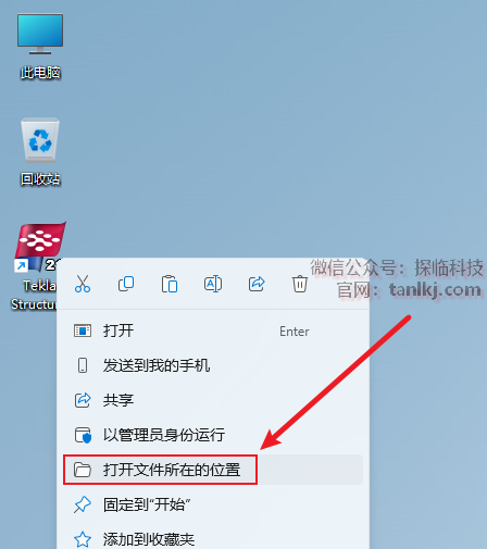 在桌面,右键软件【Tekla Structures 21.0】,点击【打开文件所在的位置】。